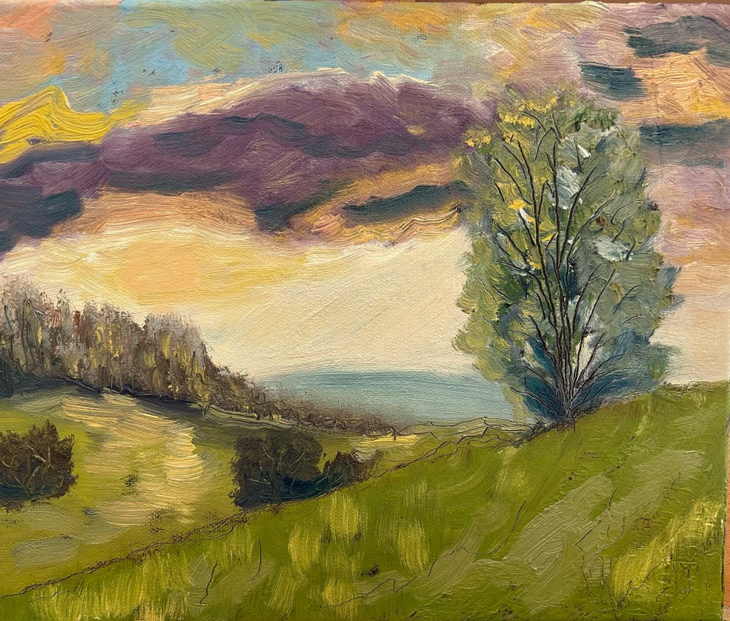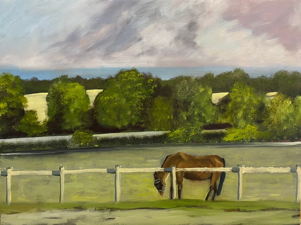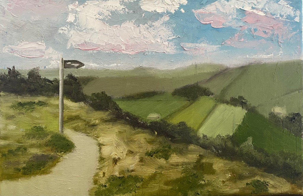 West Dean, (2022) 18x13cm oil on boardWest Dean Paddock, (2022) 40x30cm oil on canvas Above Haworth, Yorkshire. (2022) 30x20cm oil on canvas Haworth, Yorkshire. (2022) 25.5×25.5cm oil on canvas
